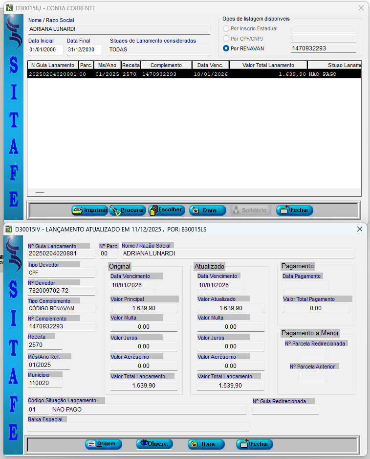 Informamos, ainda que no sitafe o dare está sendo emitido normalmente