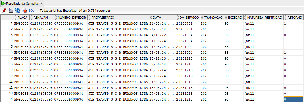Quando enviada a exceção através do cód.55, a resposta era "ISENÇÃO PARA DEFICIENTE FÍSICO NÃO PERMITIDA". Atualmente o Detran desativou o 55 e reativou o 38 no sistema deles para tentar uma solução, mas também não processou.