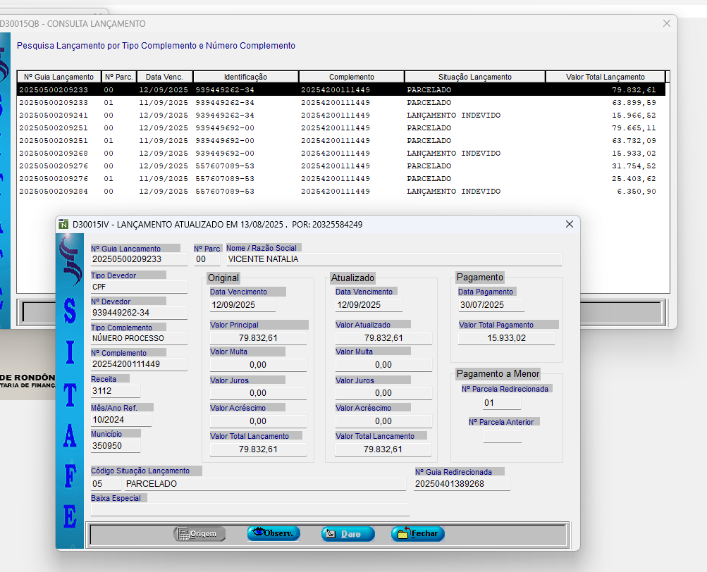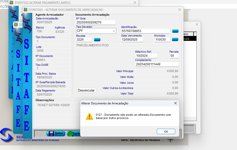 Contudo, ao proceder à verificação no sistema, embora seja possível identificar os pagamentos parciais efetuados, observa-se a existência de inconsistência sistêmica, que impede a desvinculação dos pagamentos realizados inicialmente, isto é, no primeiro pagamento antes de realizar o parcelamento, impossibilitando, assim, a transferência desses valores para os DAREs correspondentes às parcelas da DIEF retificadora.