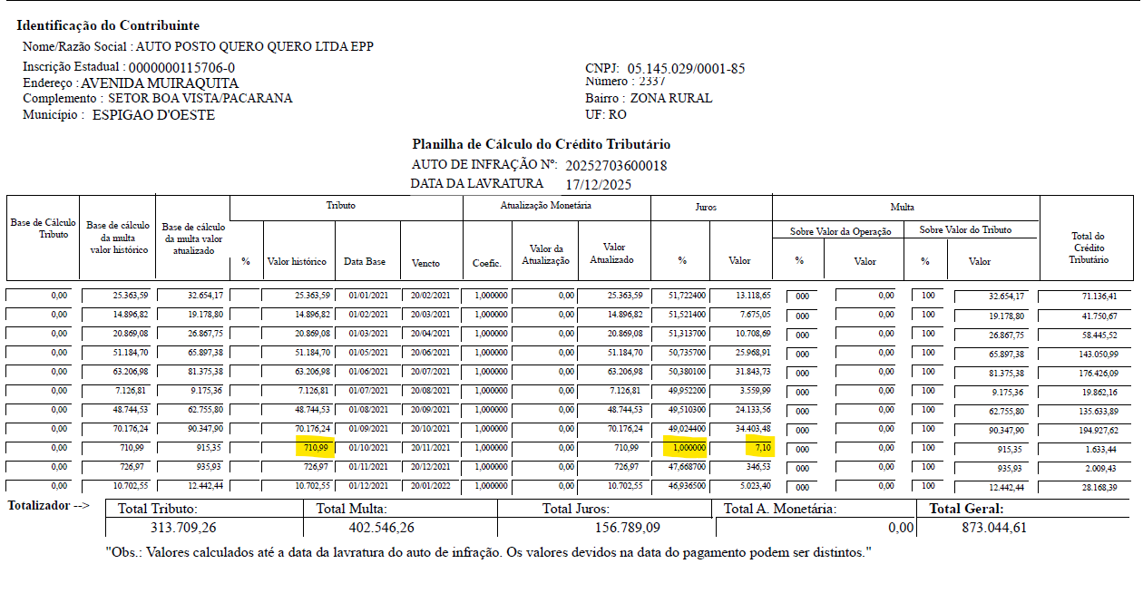 Durante a lavratura dos autos de infração foi detectado erro no cálculo dos valores dos juros para o mês de apuração de Outubro/2021.