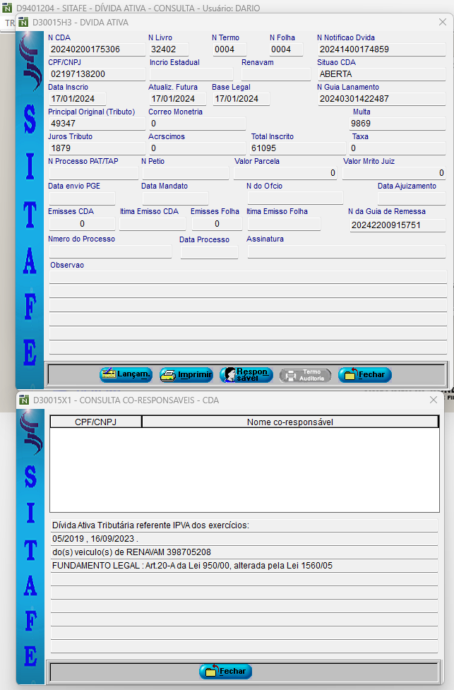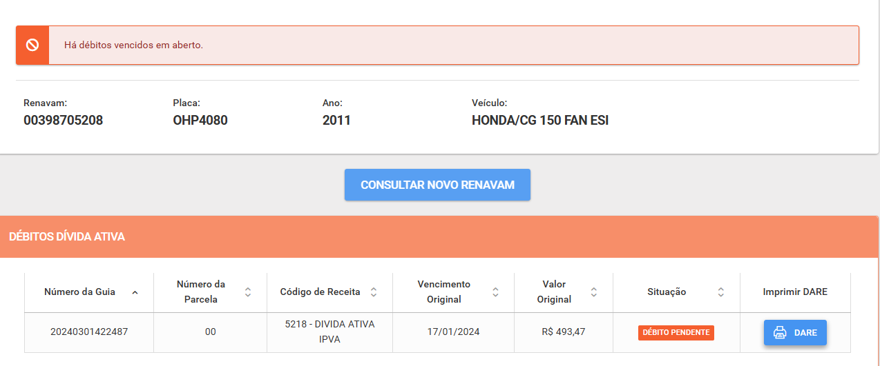 O.S. #00083686 - DEBITO VEIC LEILOADO VINC AO RENAVAM