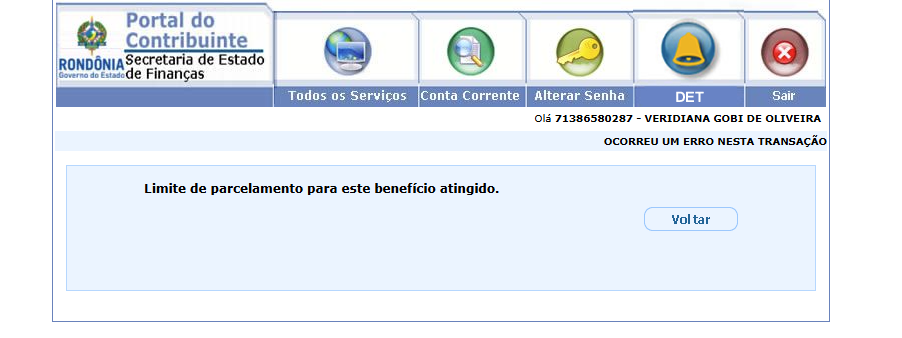 Foi identificado parcelamento 20070109900376 constava na situação 3 AGUARDANDO DEFERIMENTO, por esse motivo ocorria a informação " Limite de parcelamento para este benefício atingido ".