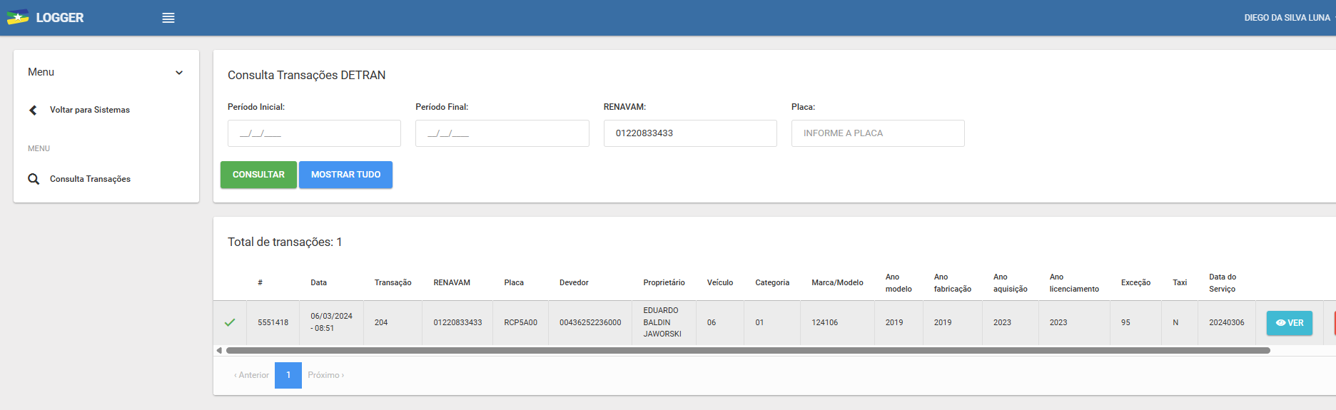 Veículo consta com renavan no Logger com entrada na frota em 06/03/2024, entretanto, não aparece no sitafe e, por essa razão não foi possível lançar IPVA de 2025.
