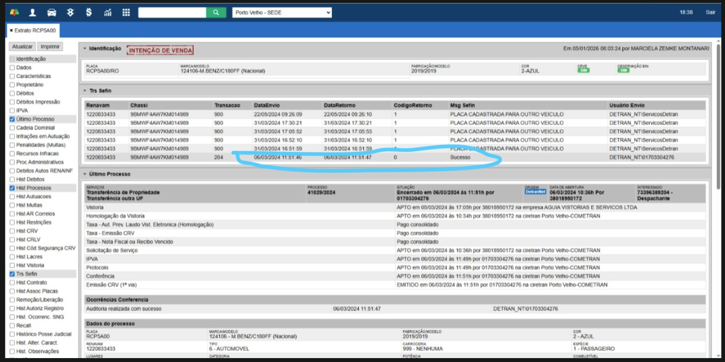 Após análise técnica do registro cadastral, constatou-se que o campo IT-QT-CILINDRADA foi enviado com informação em desacordo com o padrão estabelecido pelo DETRAN. Diante disso, solicitamos a realização de verificação detalhada do referido campo, a devida correção do dado registrado e, posteriormente, o reprocessamento do registro, de modo a assegurar a integridade, a padronização e a conformidade das informações mantidas no sistema.