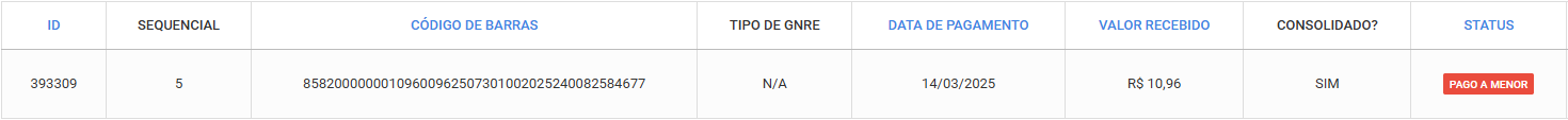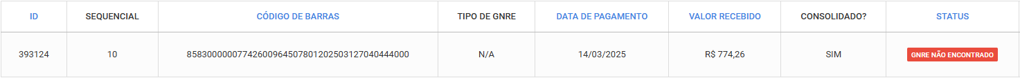 Registro 85830000007742600964507801202503127040444000 reprocessado com código de receita 1968