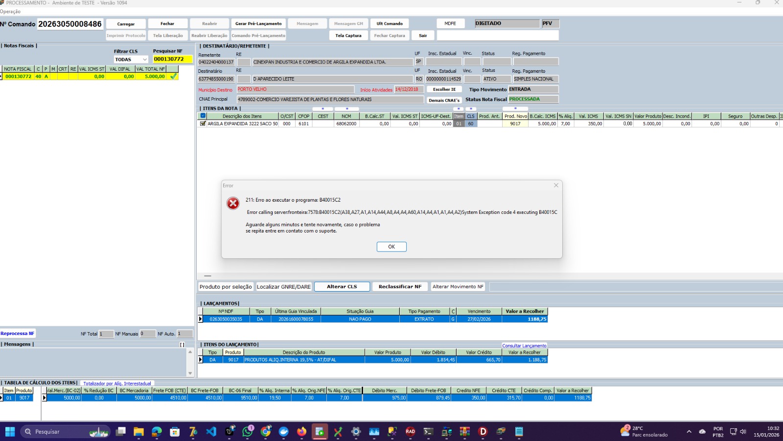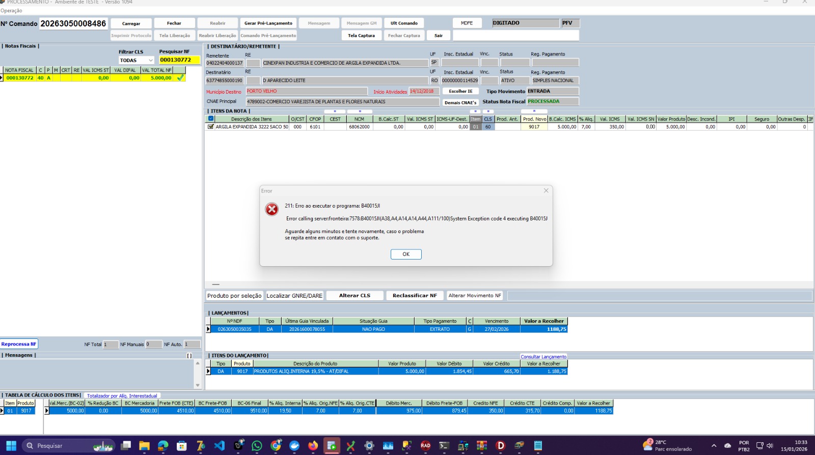 Entretanto, ao longo de todo o período de testes, foram identificados vários erros recorrentes, evidenciando instabilidade no ambiente.