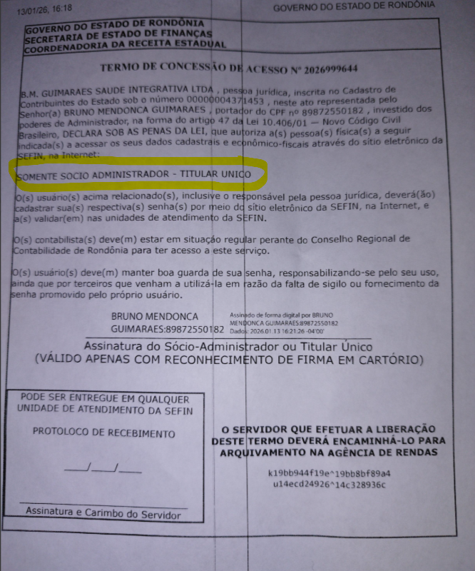 Conforme relato, o Termo de Acesso está sendo gerado/exibido de forma diferente do padrão, sem apresentar o nome e CPF da pessoa que terá o acesso.