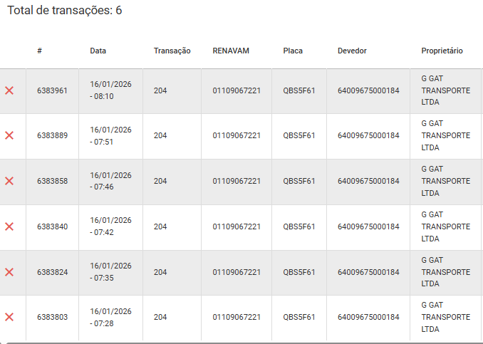 Processo de ingresso na nossa frota não se conclui, pois o sistema retorna que há débito de IPVA.