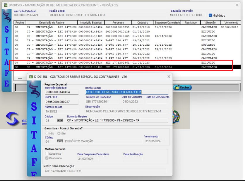 Suporte #397: O.S. #00087961 - Exclusão de dados registrado indevidamente