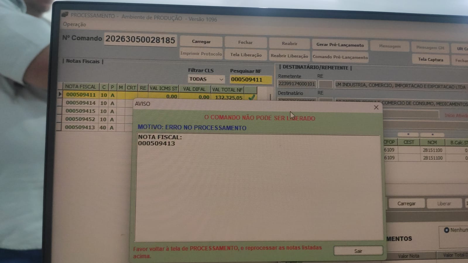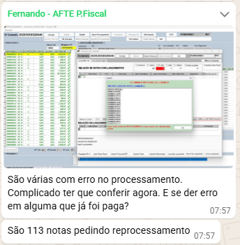 Com isso o usuário só fica sabendo que tem alguma nota com erro no processamento somente quando vai liberar o comando.