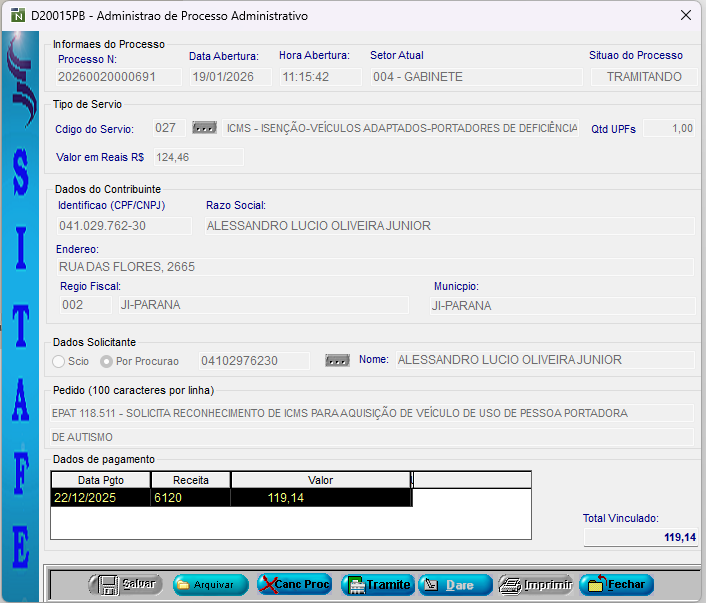Defeito #541: O.S. #00091853 - Problema para distribuir processo no SITAFE