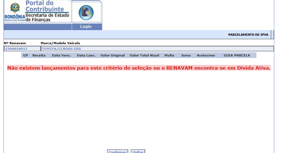 "ATENÇÃO! Em caso de parcelamento do IPVA do ano ATUAL, o documento de licenciamento do veículo (CRLV) somente será expedido pelo DETRAN após a quitação de todas as parcelas. As parcelas sofrerão acréscimo mensal de juros (SELIC)."