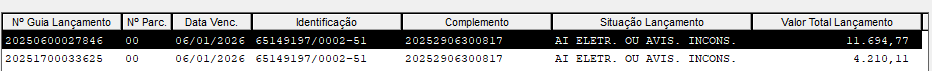 Correção nas guias de lançamento referente ao auto de infração 20252906300817 para situação 57 - aditado