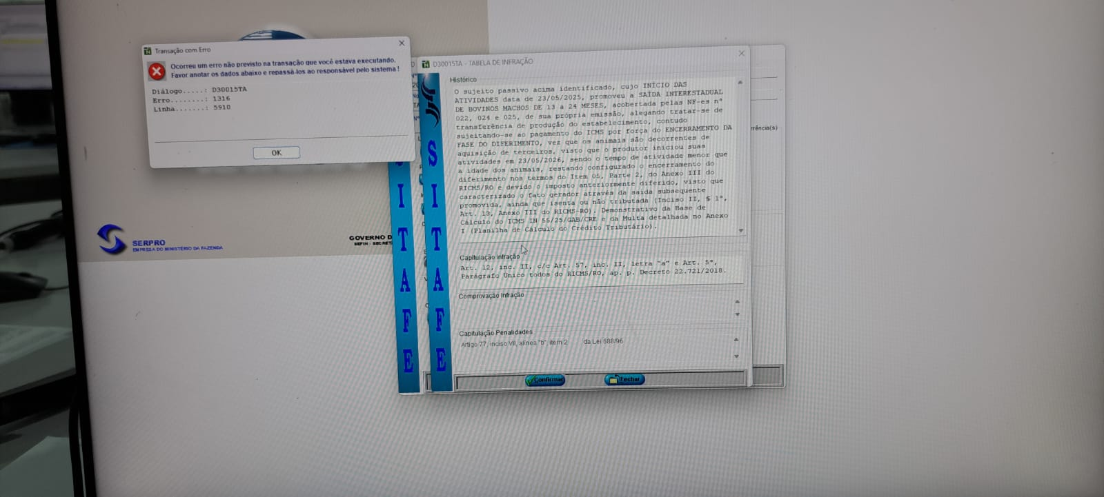 No dialogo D30015TA esta dando erro 1316 na linha 5910, conforme print anexo. Favor realizar os ajustes.