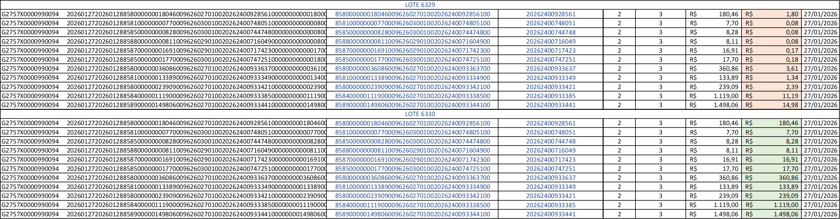 Entretanto, houve comunicação da equipe de operação informando que o Banco do Brasil encaminhou um novo arquivo (LOTE 6330, em anexo) contendo arrecadações do dia 27/01/2026.
