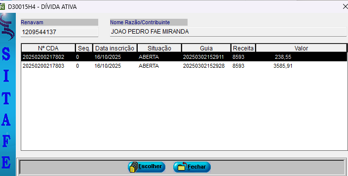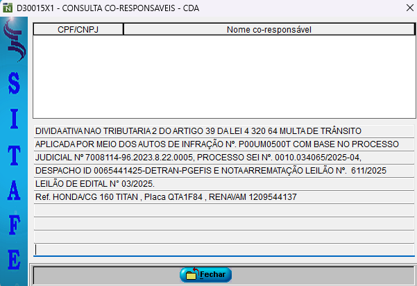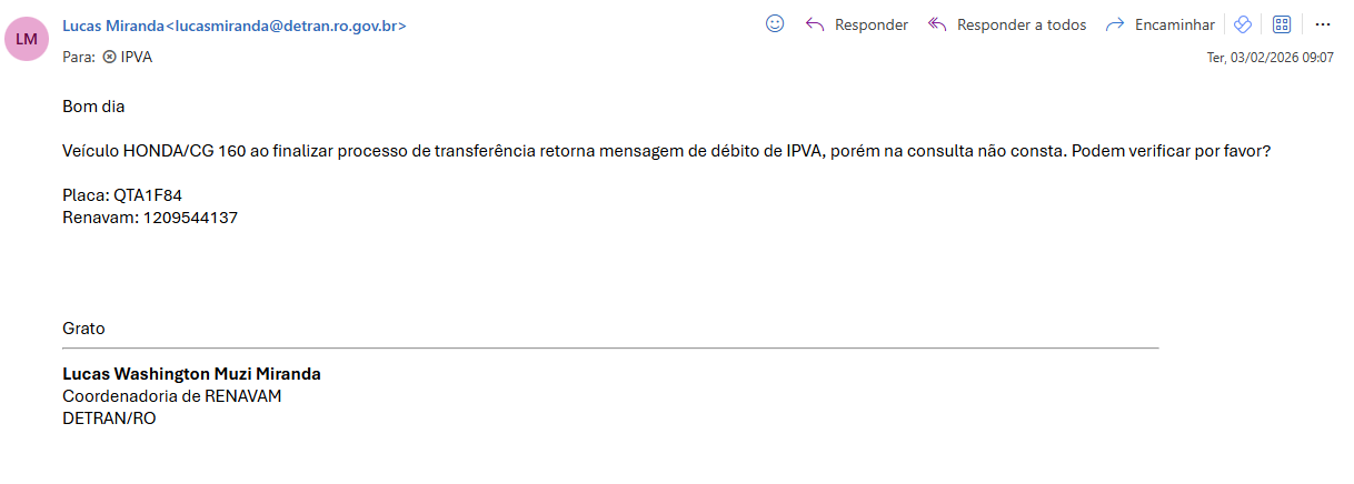 Por fim, destacamos que não há débitos de IPVA ou Certidões de Dívida Ativa (CDAs) de competência da SEFIN em aberto que impeçam a transferência, ressalvada eventual restrição para unidades da federação diversas das anteriormente citadas.