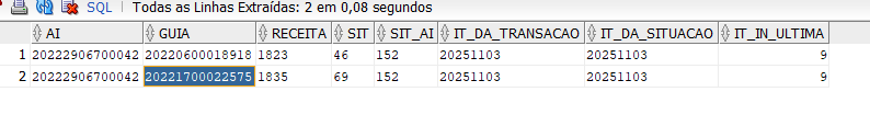 Tendo em vista o SEI 0030.009332/2025-69, solicito a análise se há impedimento de inscrição em dívida ativa no sistema https://dividaativa.sefin.ro.gov.br/, em função do AI 20222906700042 ter uma guia em aberto (20220600018918) e outra no cod de situação 69 (20221700022575), uma vez que o AI encontra-se em cod 152 no PAT, como abaixo visto: