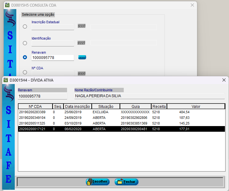 No entanto , quando se pesquisa por dividas ativas vinculadas ao renavam aparecem três débitos cda 20190200349104, 20190200511325, 20200200017121 ( ipvas de 2016,2017 e 2018)