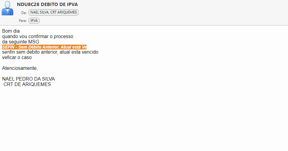 O.S. #00079276 - DETRAN - DEBITO IPVA