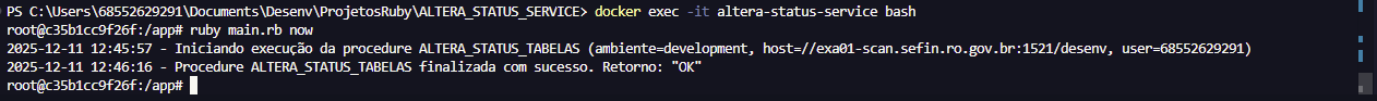No projeto original, a execução do processo era realizada por meio de um serviço desenvolvido em Ruby. Contudo, após alinhamentos técnicos, foi definida a alteração da estratégia de execução, passando o processamento a ser realizado por meio de um job no banco de dados Oracle, com agendamento diário para execução às 23h.
